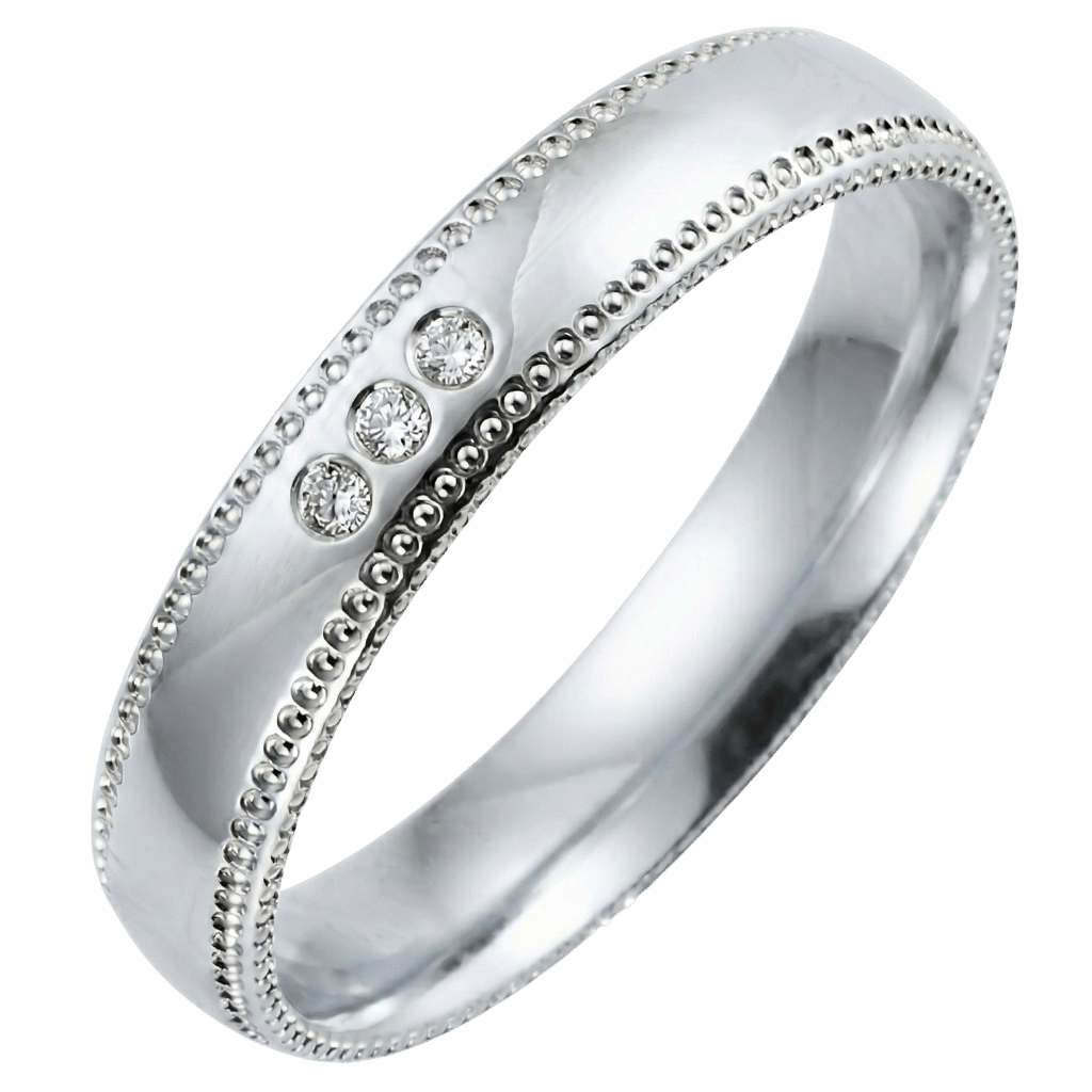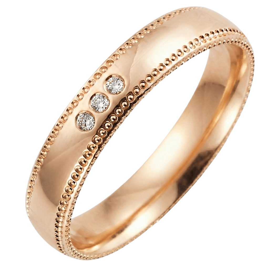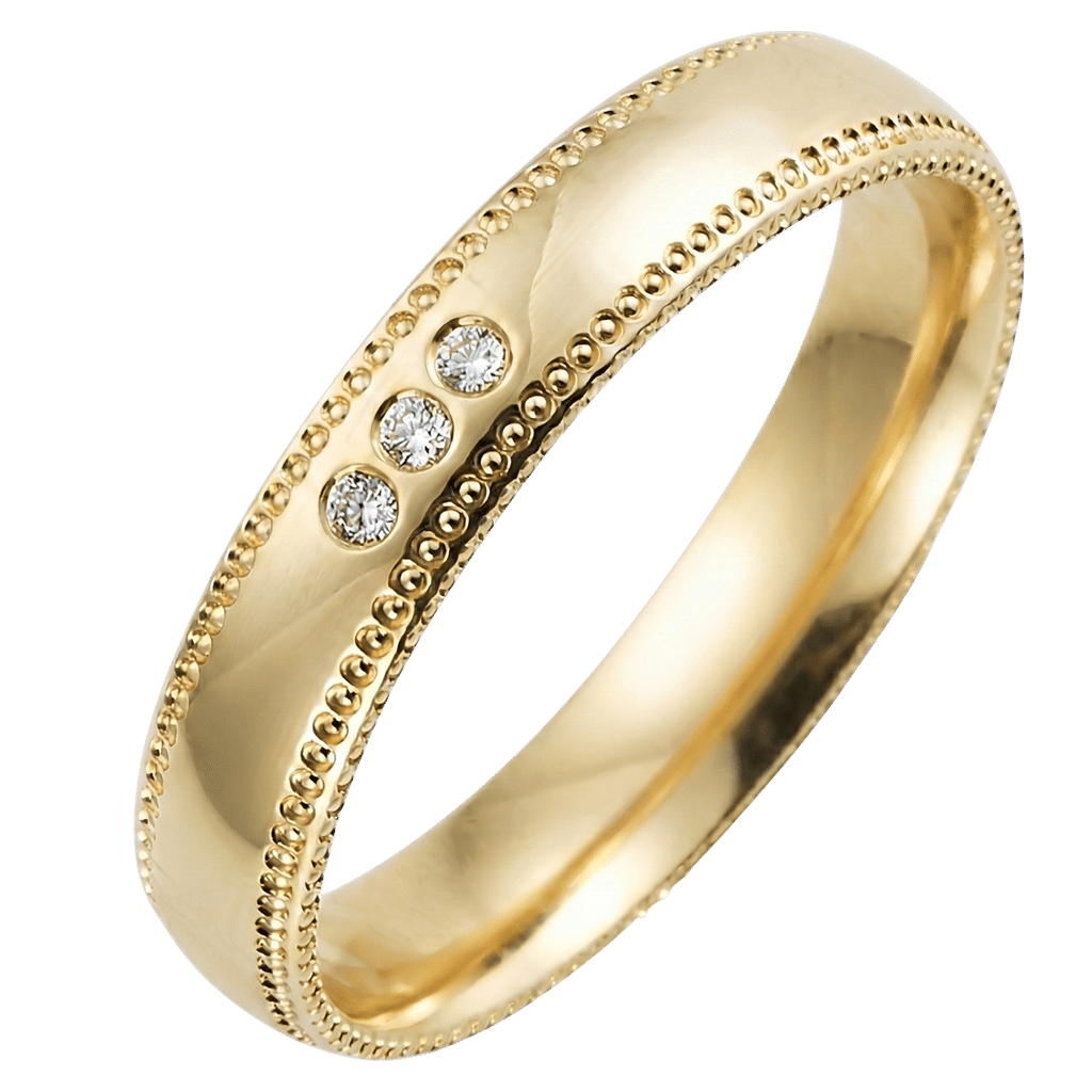 Alliance or jaune perlée diamants